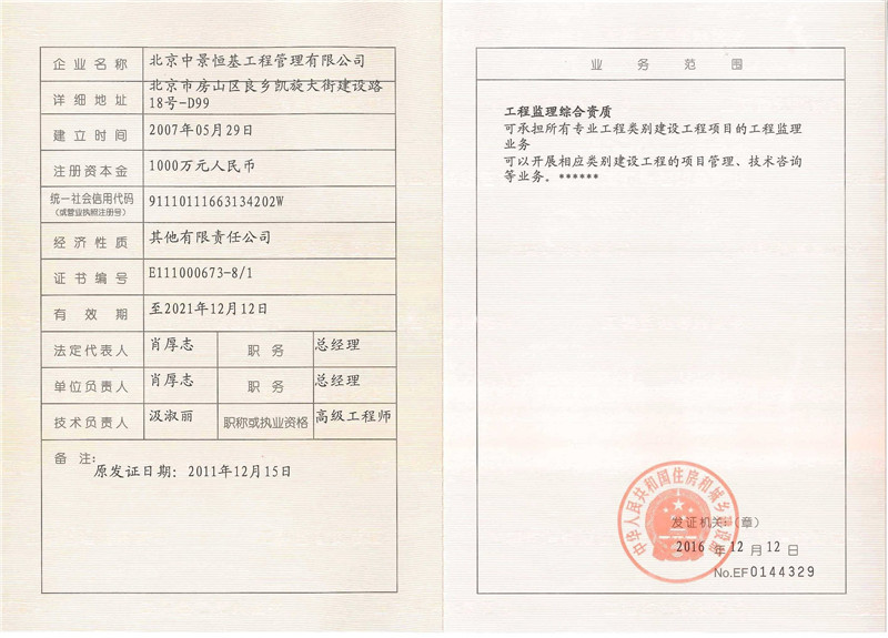 北京中景恒基工程管理有限公司(以下簡稱“公司”) 具有工程監理綜合資質、造價咨詢甲級資質、水利工程、人防工程監理資質和工程招標代理資質,是全國百強監理企業之一。主要從事工程監理、造價咨詢、項目管理、招標代理等咨詢服務 業務。 公司自成立以來,始終注重自身建設,強化內部管理,形成了一套標準化、信息化、科學化的管理模式。率先通過了ISO9001質量管理體系、IS...