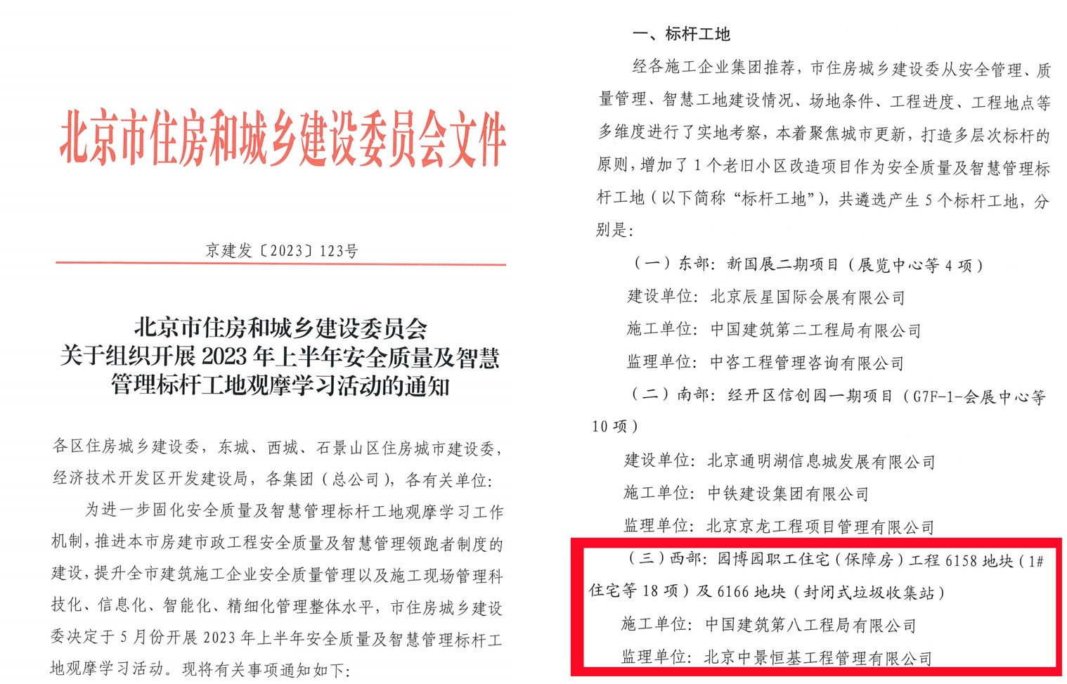 喜報-公司“園博園住宅一期工程”獲評“北京市標桿工地”稱號